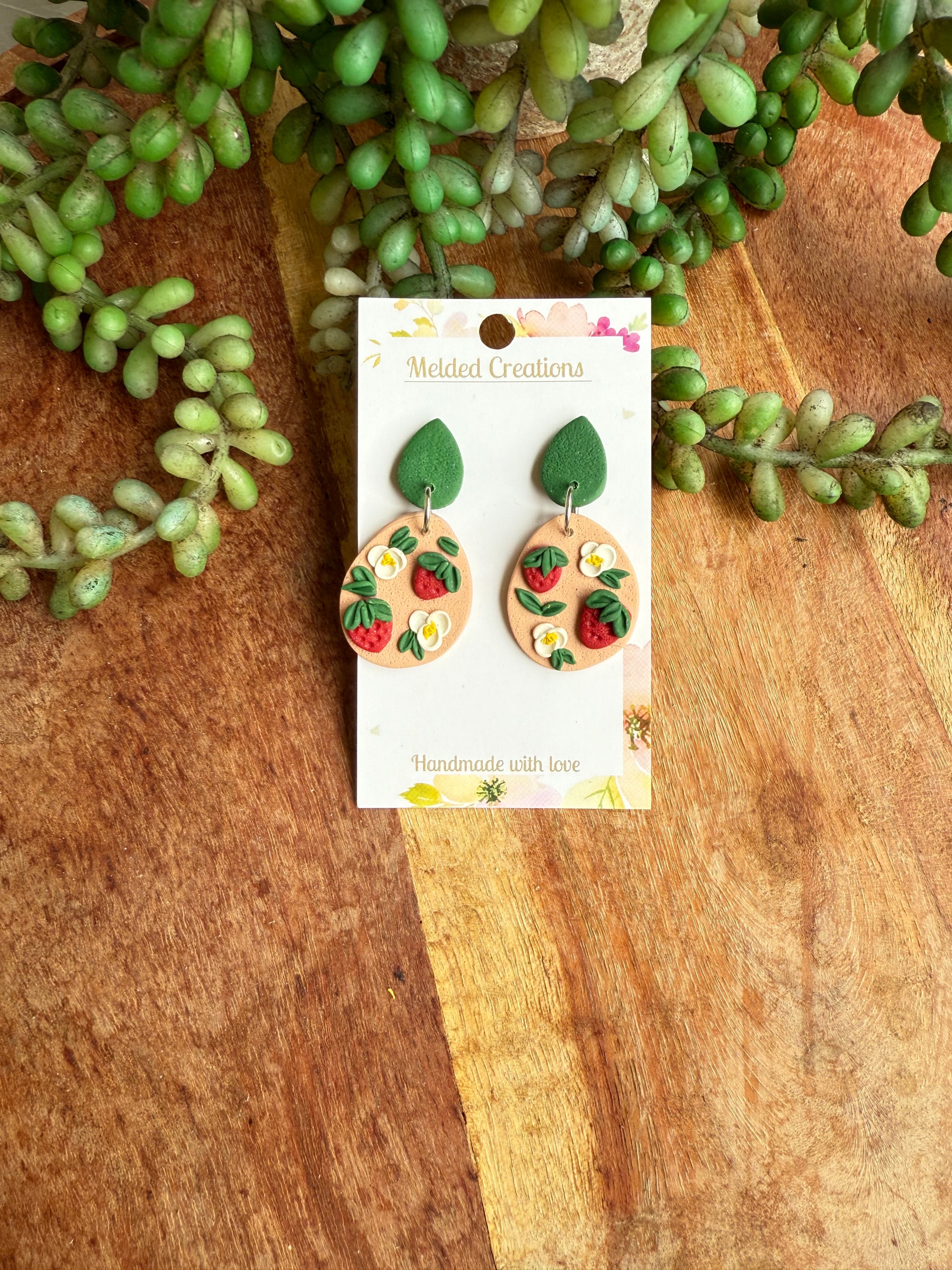 Add a touch of summer to your style with these charming handmade clay earrings, featuring vibrant red strawberries, delicate white flowers, and lush green leaves. Each pair is carefully sculpted with love and attention to detail, making them a unique accessory that celebrates the beauty of nature. Lightweight and perfect for everyday wear, they’re ideal for spring, summer, or as a thoughtful gift for someone who loves playful, botanical jewelry.